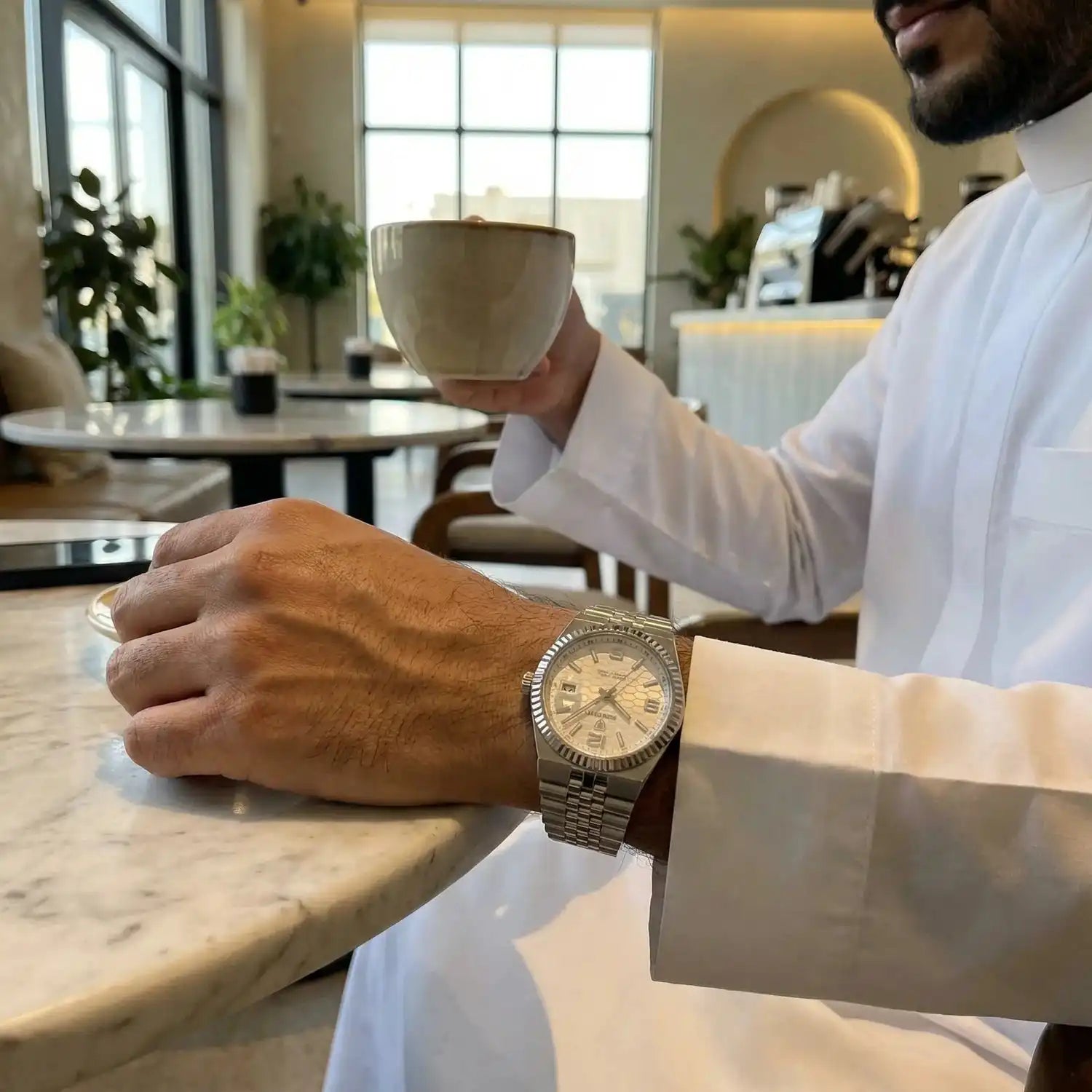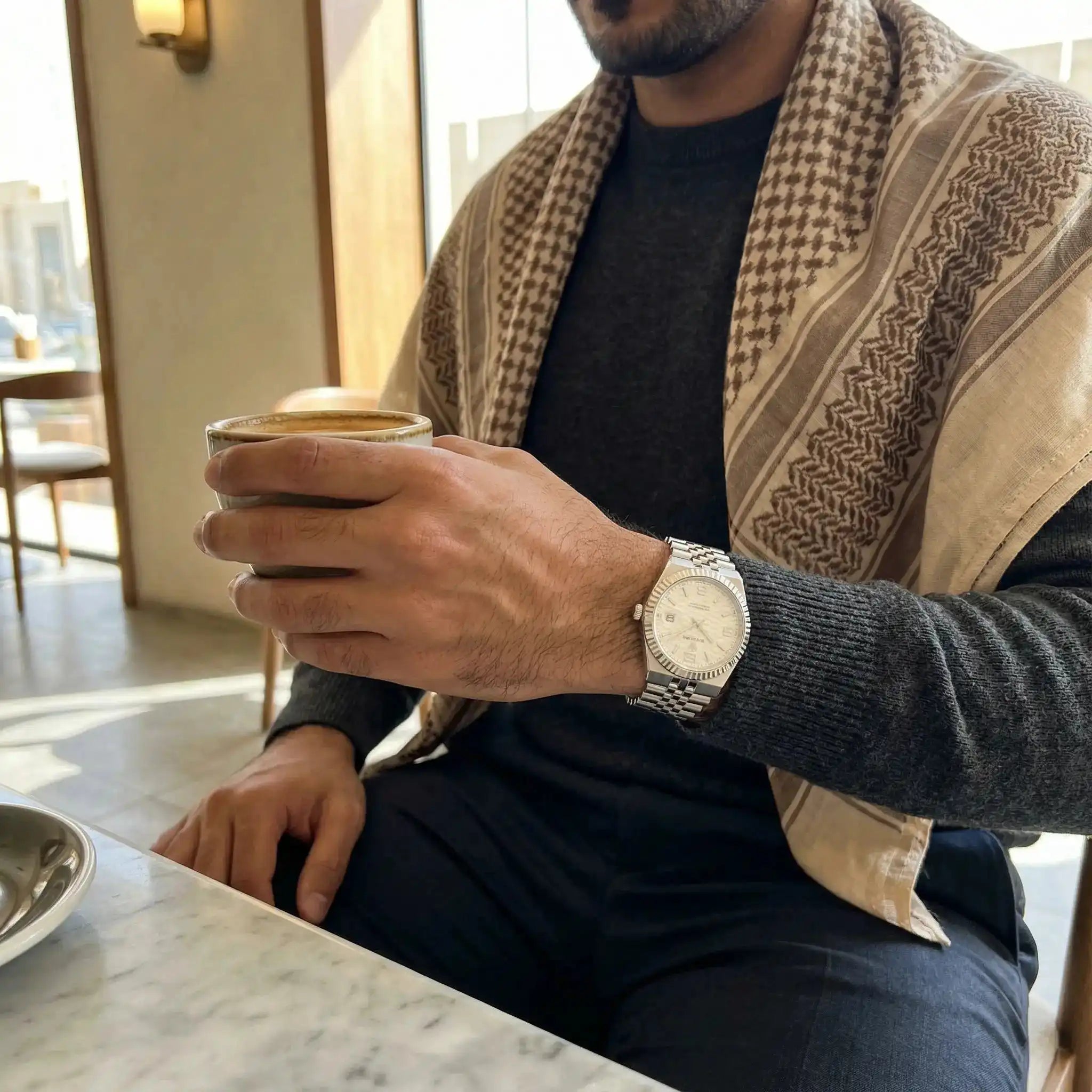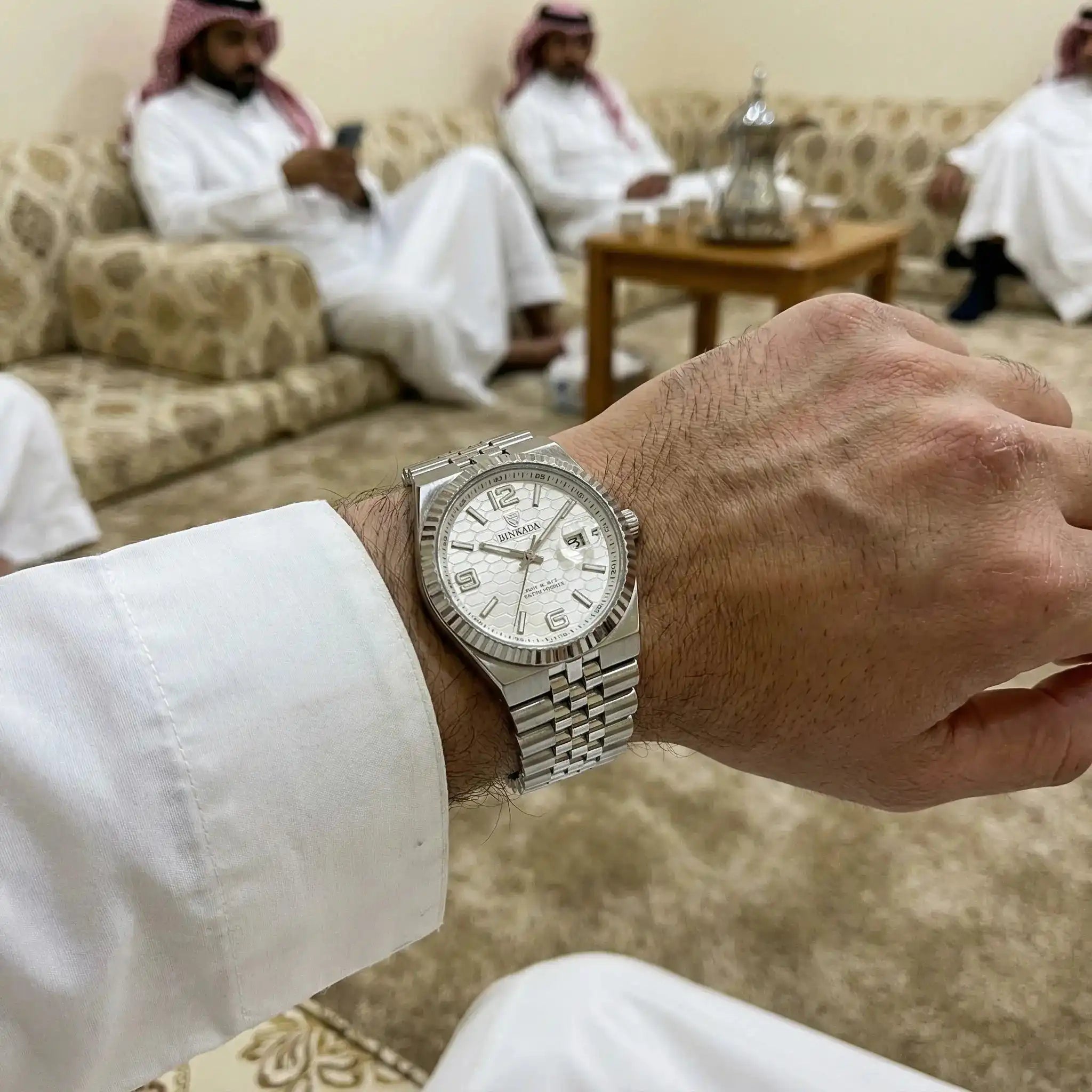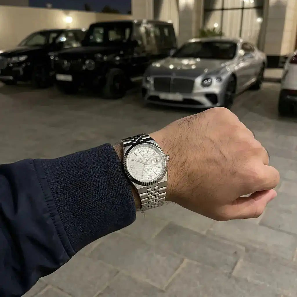 صراحة الساعة فاجأتني… الوزن مضبوط والتفاصيل مرتبة، تحسها أغلى من سعرها.