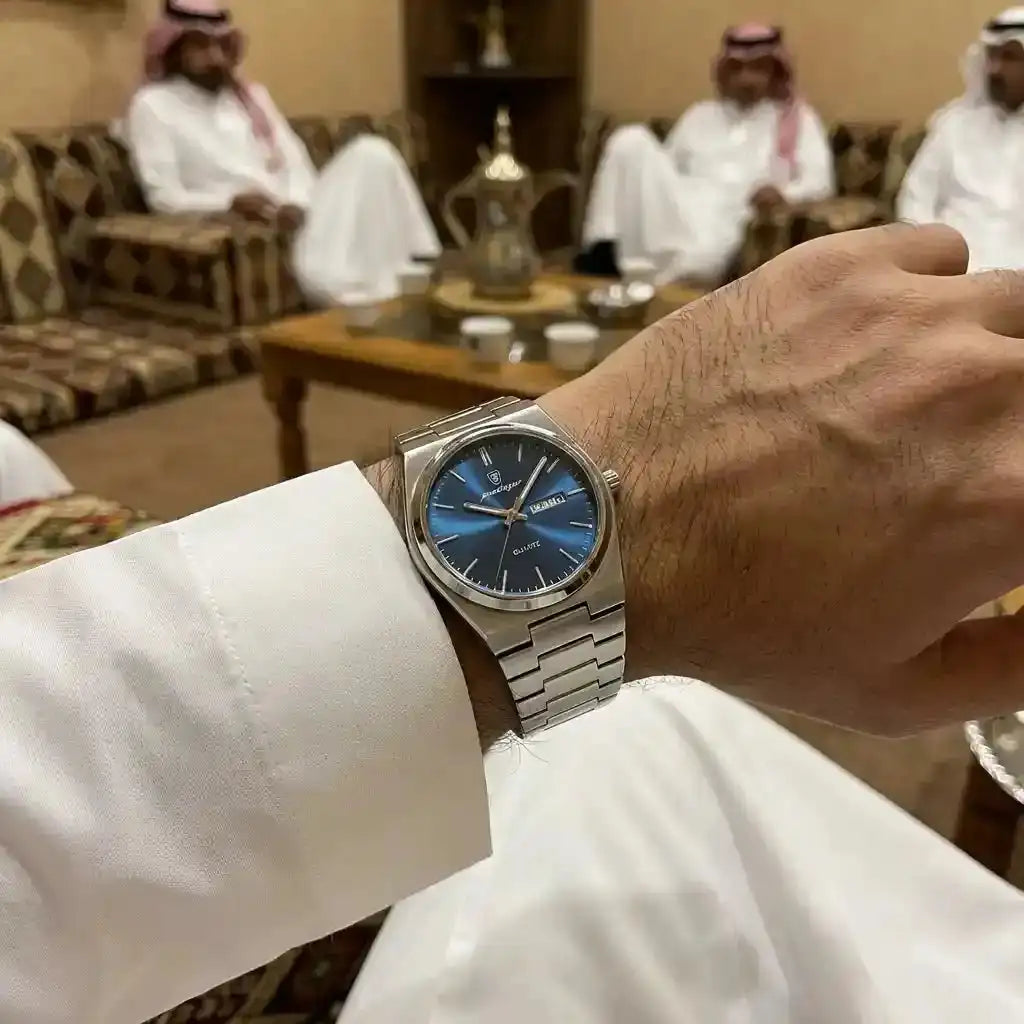 صراحة الساعة فاجأتني… الوزن مضبوط والتفاصيل مرتبة، تحسها أغلى من سعرها.
